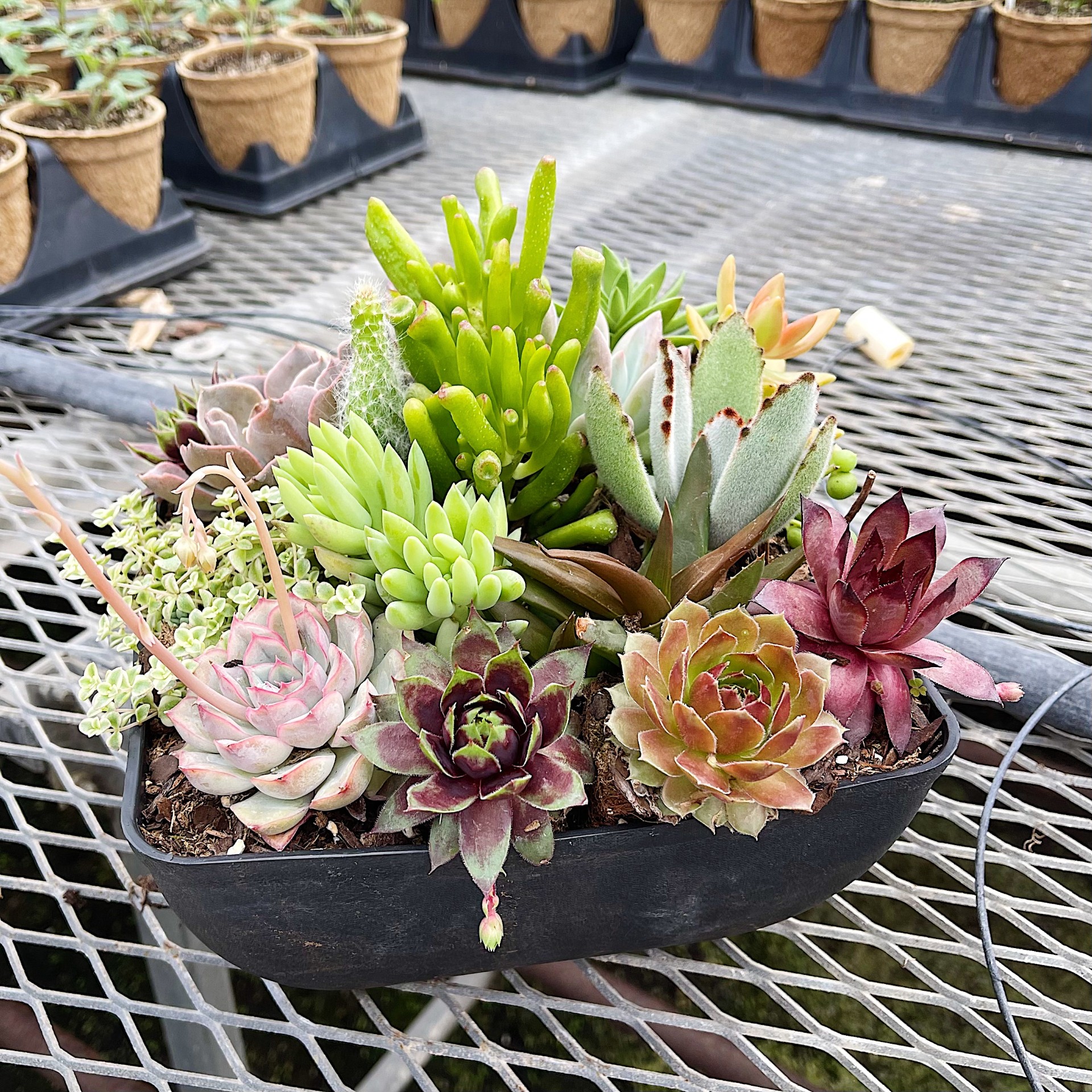 Why not surprise someone with a colorful succulent planter? It's lovely, long-lasting, and low-maintenance. Perfect for a home or office with a good amount of light! Each succulent planter is available in one of several shapes with a unique combination of succulents.